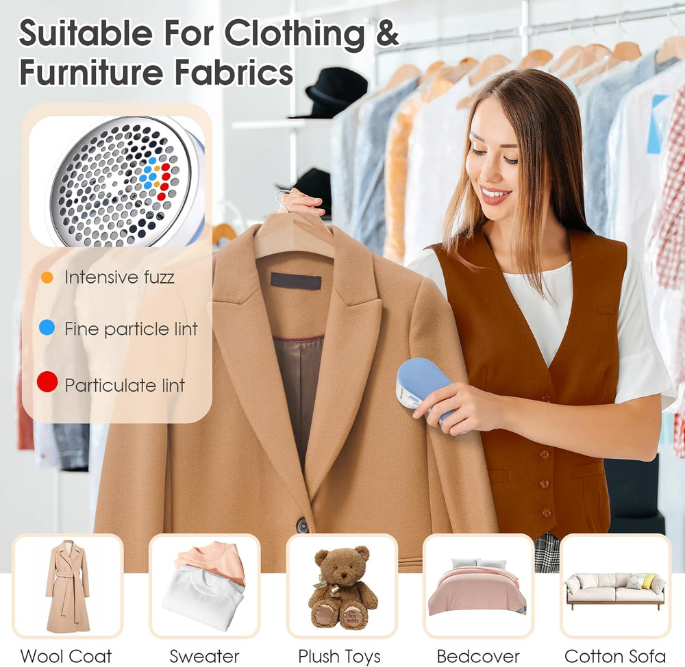 Fabric Shaver: This fabric shaver safely removes fuzz, lint and pills from your favorite fabrics, from socks to sofas - it is safe for use on most household fabrics. It's with Removable Bin, Easy Remove Fuzz, Lint,balls, Pills, Bobbles